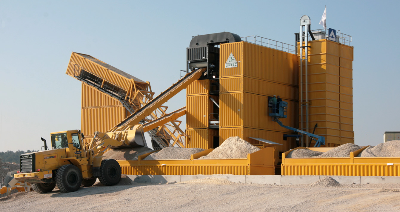 Тип CSD означает Container Screen Drum – что означает заводы, запатентованные компанией LINTEC с сортировочно-сушильным барабаном. Благодаря объединению двух процессов – просушивания и просеивания в одном узле у заводов отсутствует элеватор горячего минерала и грохот, что является самым экономичным процессом в асфальтосмесительной технике.